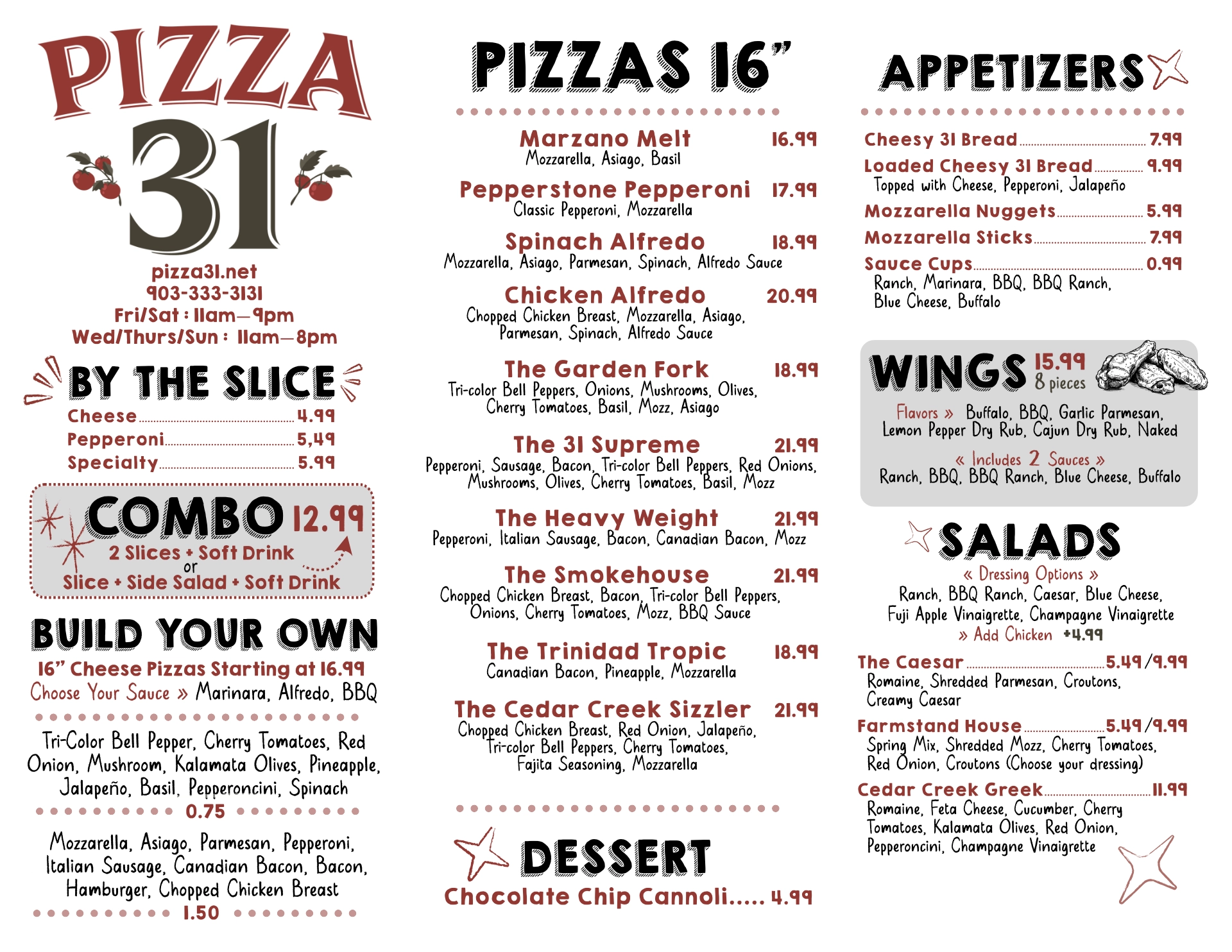 By clicking the Sign up button below, you consent to receive marketing messages from Pizza 31. Reply UNSUBSCRIBE to opt-out. Terms & Conditions and Privacy Policy apply.